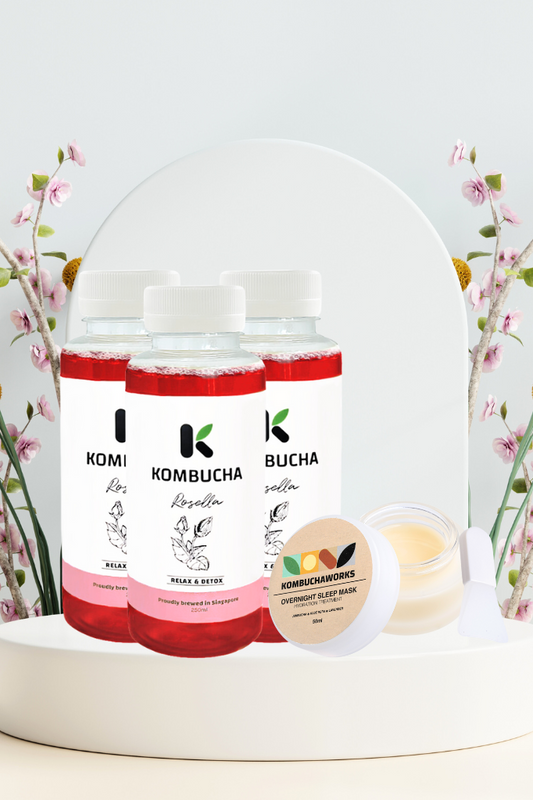 3 Bottles Rosella Kombucha + 1 Kombucha Mask